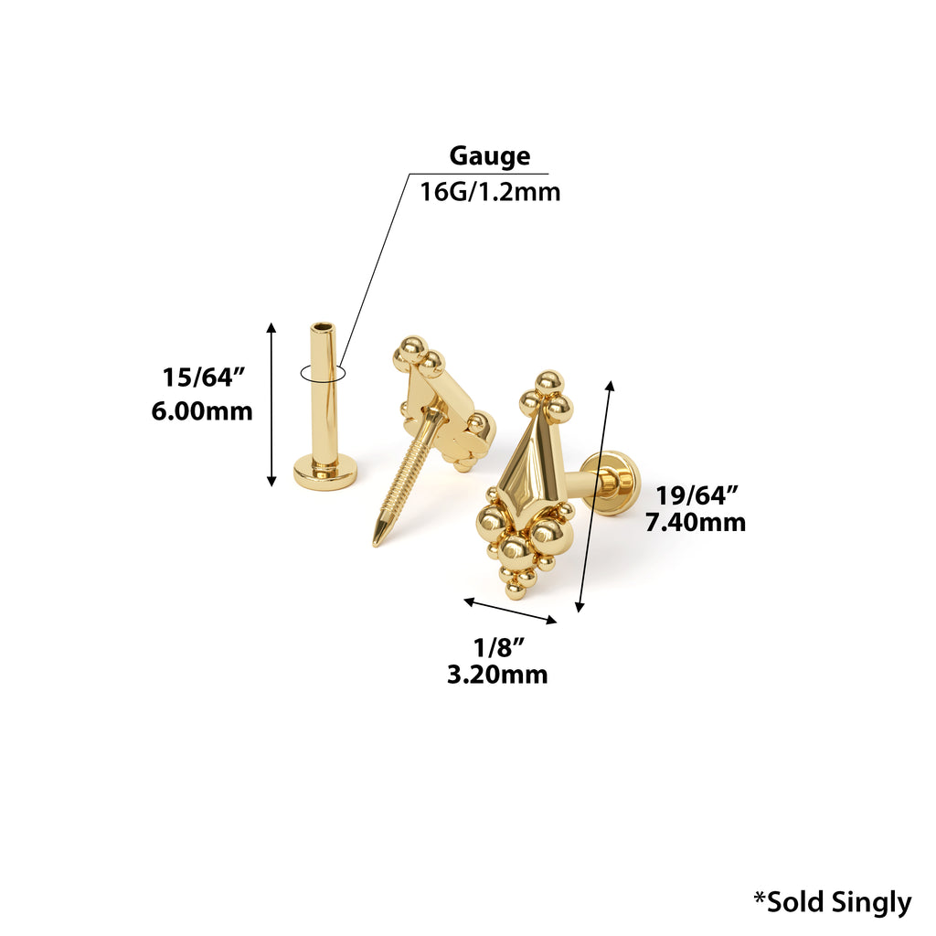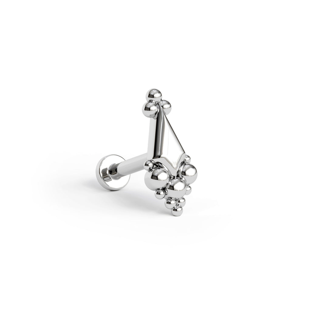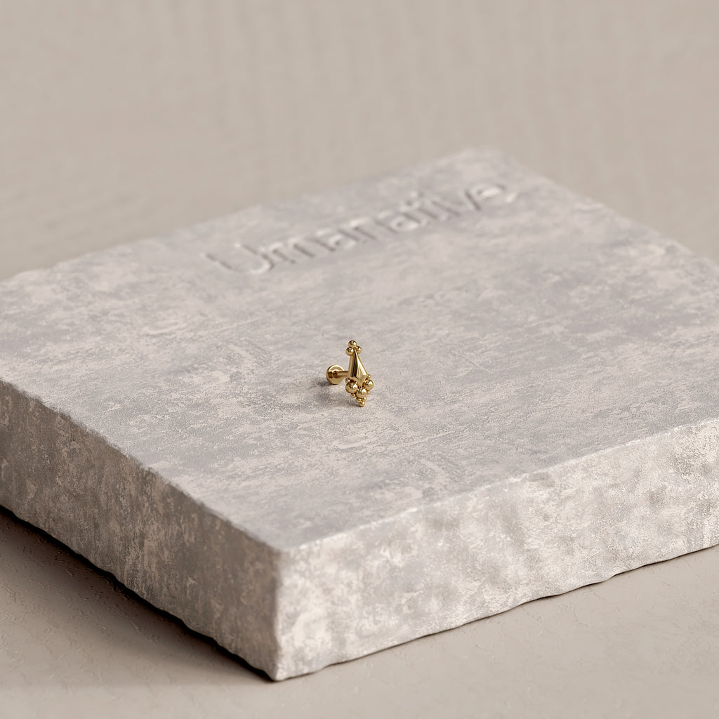 A beautiful flat back stud earring to add to your cartilage. With a unique rhombus design and beaded accents, this unique stud is crafted from 14k solid gold. It's minimalist and totally chic. You'll love wearing it!