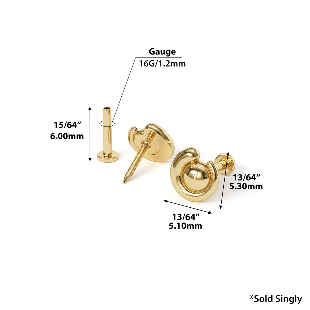 The threaded screw pin earring post is easy to insert and remove, and the flat back makes it comfortable to wear. Our screw pin flat back earring studs are made of solid 14k gold and are hypoallergenic and nickel free.